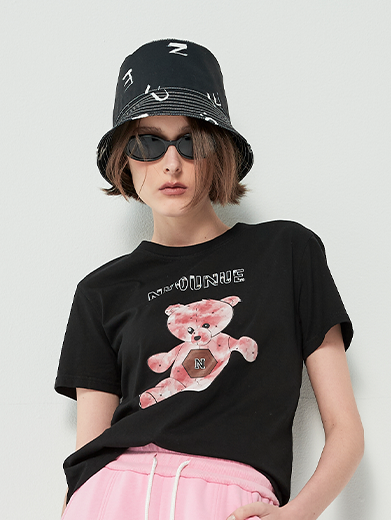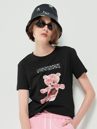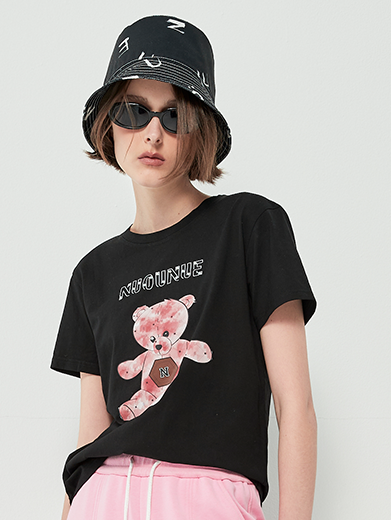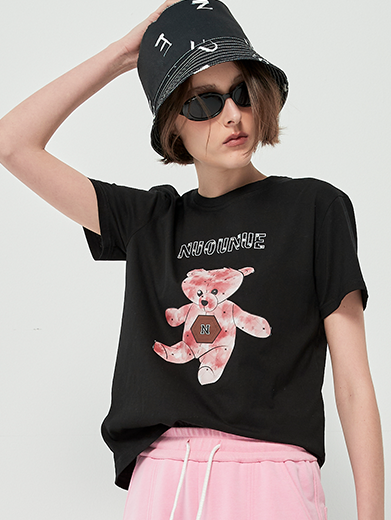 Sự kết hợp giữa form áo basic hiện đại và họa tiết gấu nâu ngộ nghĩnh đã tạo nên một thiết kế vừa thân thiện, vừa thời trang